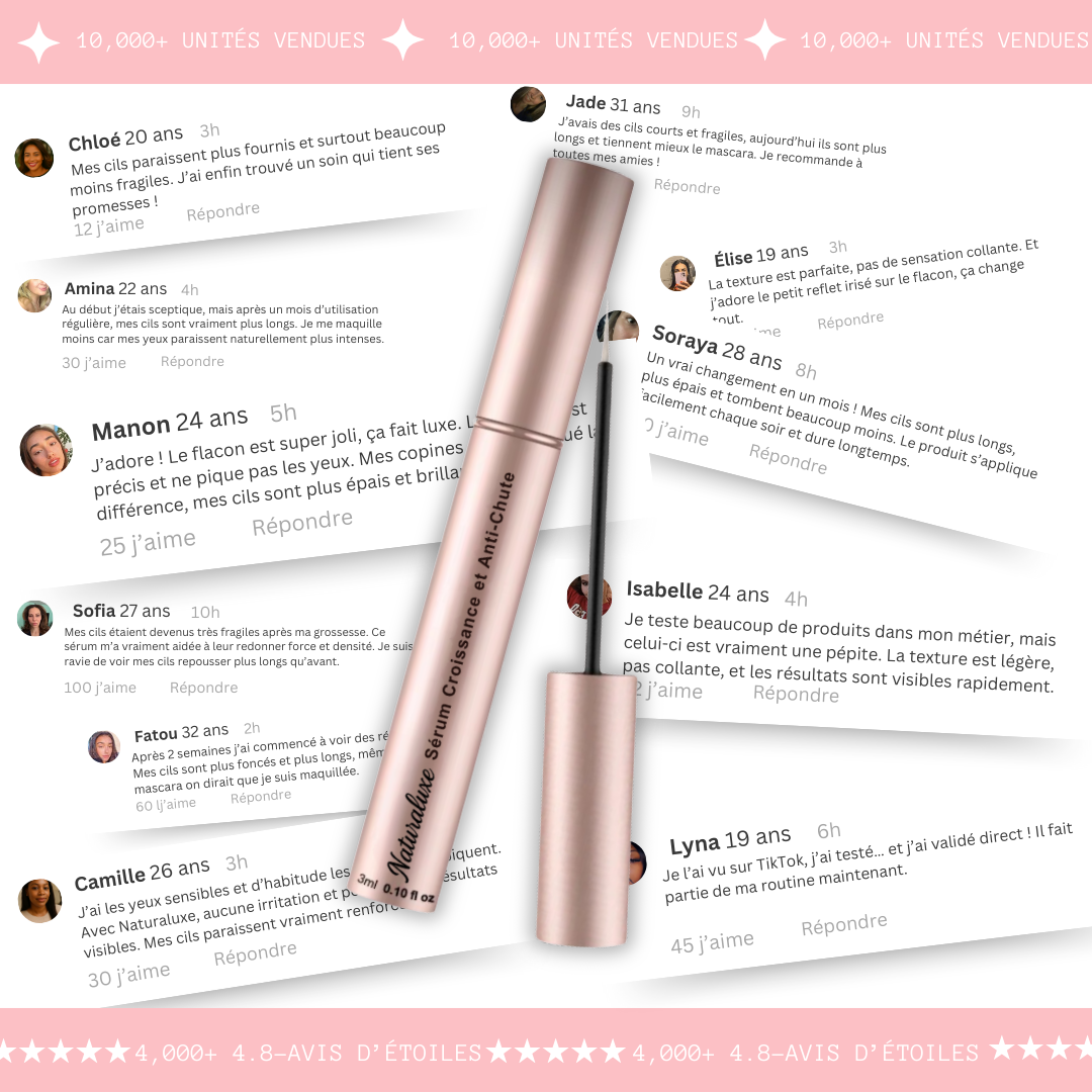 Chez Naturaluxe™nous croyons que chaque femme mérite des cils longs,denses et sains, sans compromis sur la sécurité,la douceur ou l'efficacité.